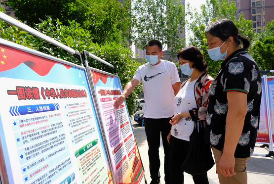 活动现场,普法志愿者们通过设立宣传展板、发放宣传资料、一对一释法等方式,向过路群众、小区居民宣传《中华人民共和国宪法》《中华人民共和国民法典》《信访工作条例》等法律法规知识。