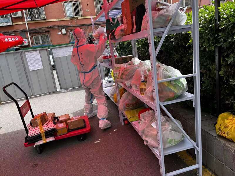 第二天,中通的王红鱼和胥振坤也入驻农光东里社区,两人和京东的快递员包下了这里30多栋楼居民的快递。自4月23日出现首例确诊病例以来,农光东里社区已经历半个多月的封(管)控 。