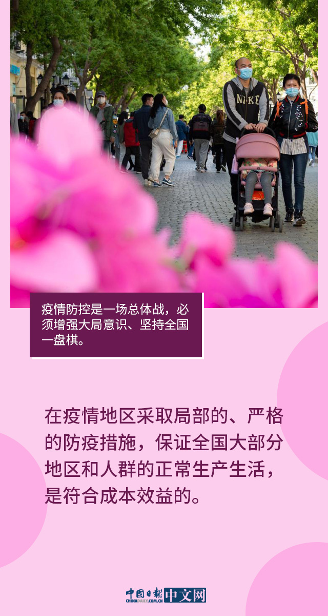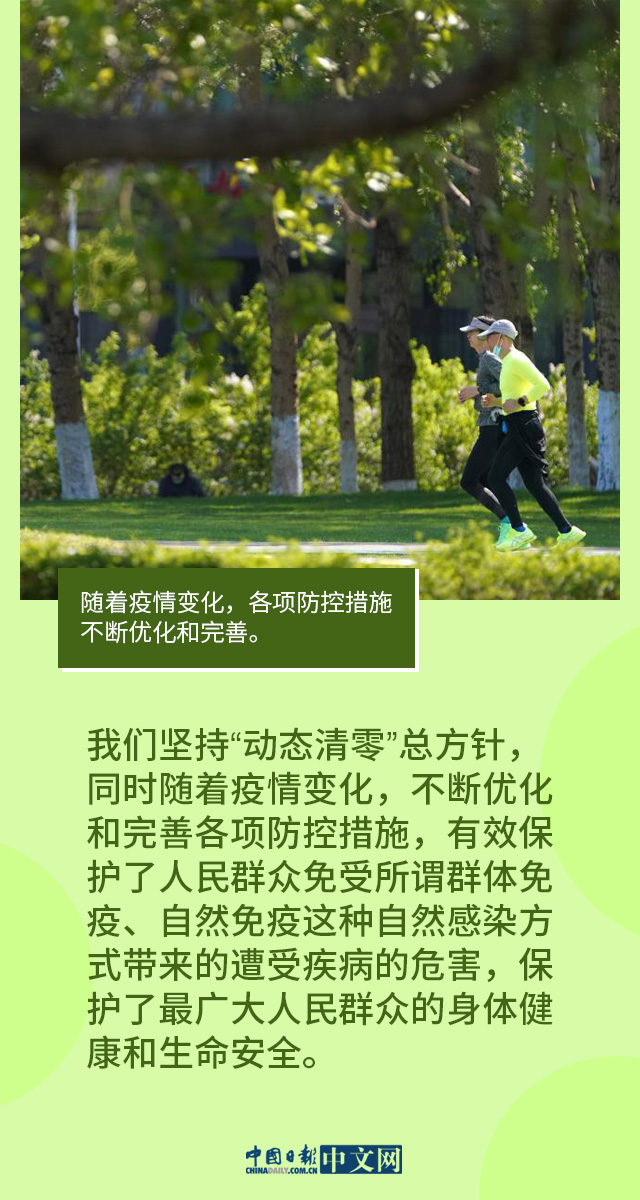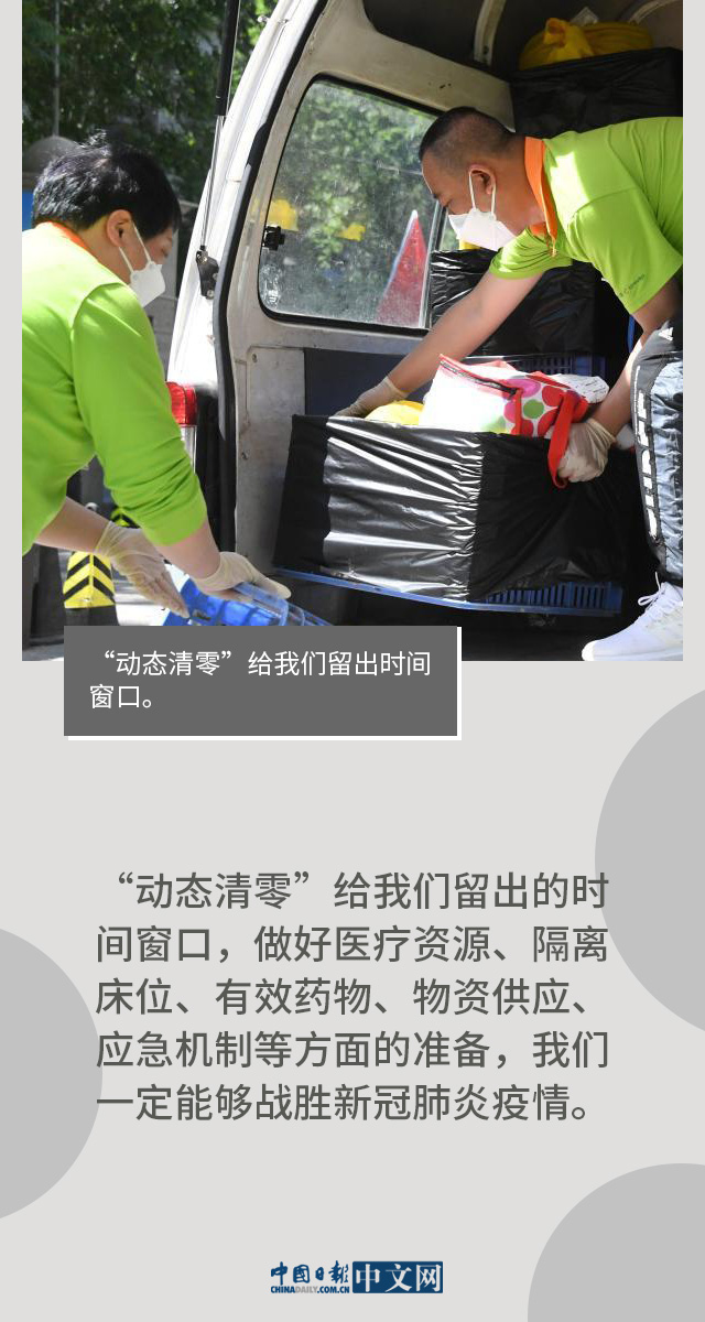 从武汉保卫战,到常态化疫情防控,再到迎战德尔塔、奥密克戎的全链条精准防控,我们始终坚持“动态清零”总方针,发现一起、扑灭一起。实践证明,“动态清零”是当前统筹疫情防控和经济社会发展的最优选择,是当前我国疫情防控务必守住的底线。