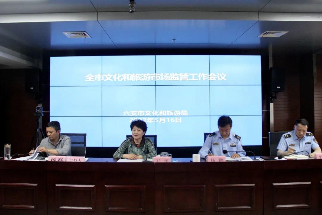 会后召开全市文化和旅游市场监管工作会议,就六安市文旅市场复工复产、常态化疫情防控和文旅行业安全生产等工作以及“中国旅游日”活动安排作了相关部署。