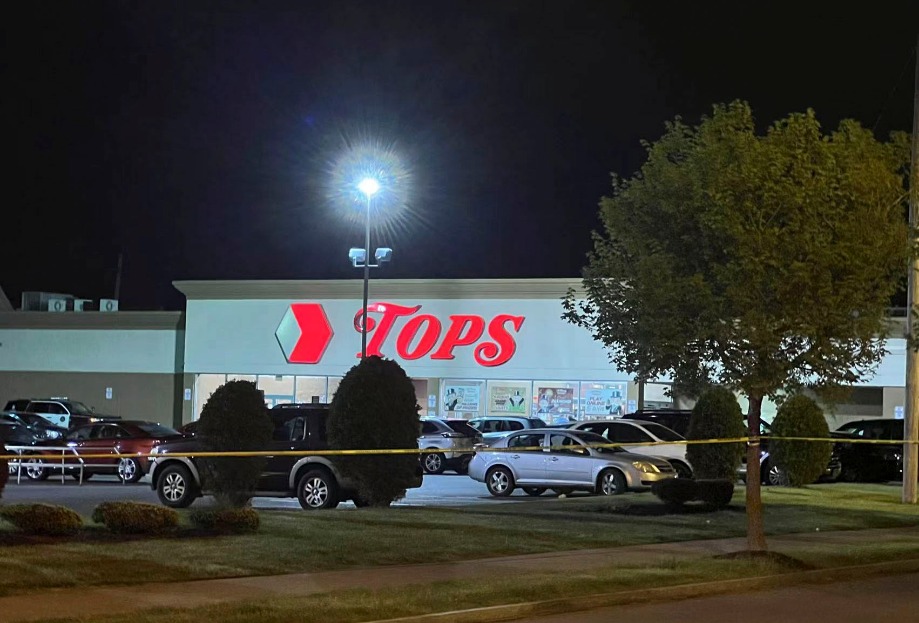 这是5月14日在美国纽约州布法罗市拍摄的发生枪击案的超市(手机拍摄)。(新华社发,张杰摄)