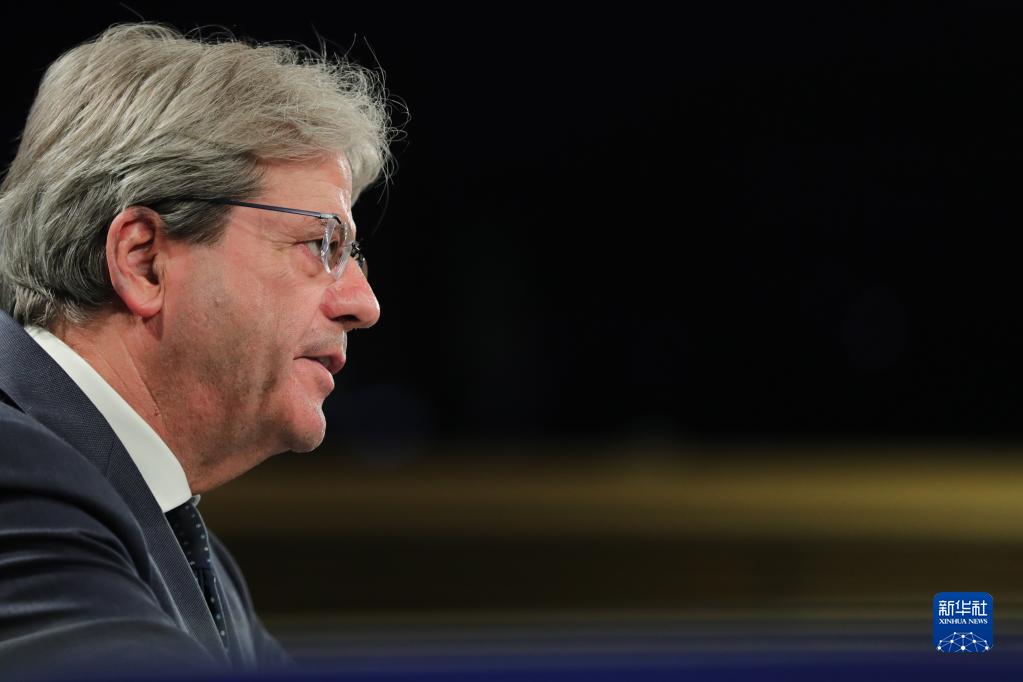 5月16日,欧盟委员会负责经济事务的委员真蒂洛尼在比利时布鲁塞尔举行的新闻发布会上讲话。新华社记者 郑焕松 摄