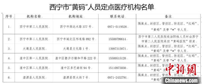 图为西宁市“黄码医院”人员定点医疗机构名单。 西宁市新冠肺炎疫情防控处置工作指挥部供图