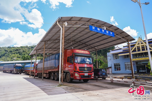 (勐康口岸正在等待查验的入关货运车辆。卢磊摄)