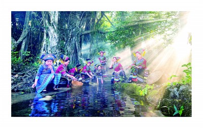南宁市隆安县将民族文化融入乡村振兴战略,提升乡村整体品质。图为在城厢镇兴阳社区那陇屯一处溪水旁,一群壮族青年在嬉戏对山歌。何宏生摄/光明图片