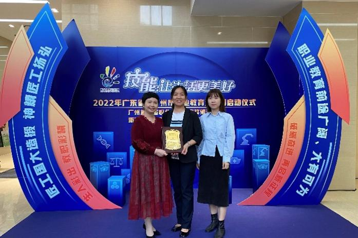 李锦记中国企业事务总监赖洁珊(左)与广州市旅游商务职业学校副校长胡秋月(中)在大会现场