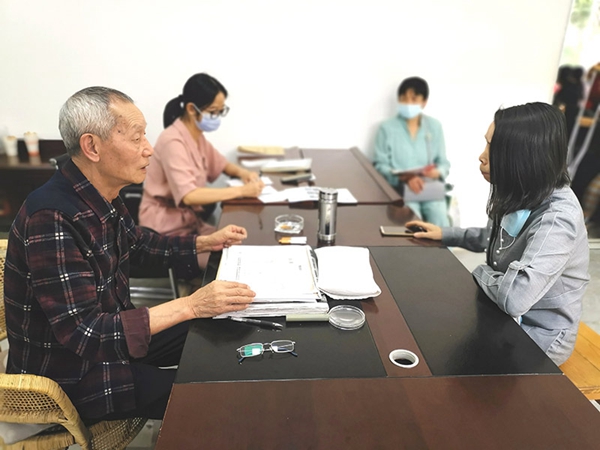 (老中医李伯藩在为患者诊断。叶利民摄)