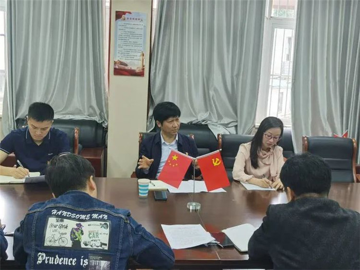 随后,在党员活动室召开座谈会。会上,袁乃玉就校园疫情防控常态化管理、校园文化宣传建设、校园传统游戏工作三个方面同与会人员进行了深入的交流探讨,并给予了建设性的指导意见。