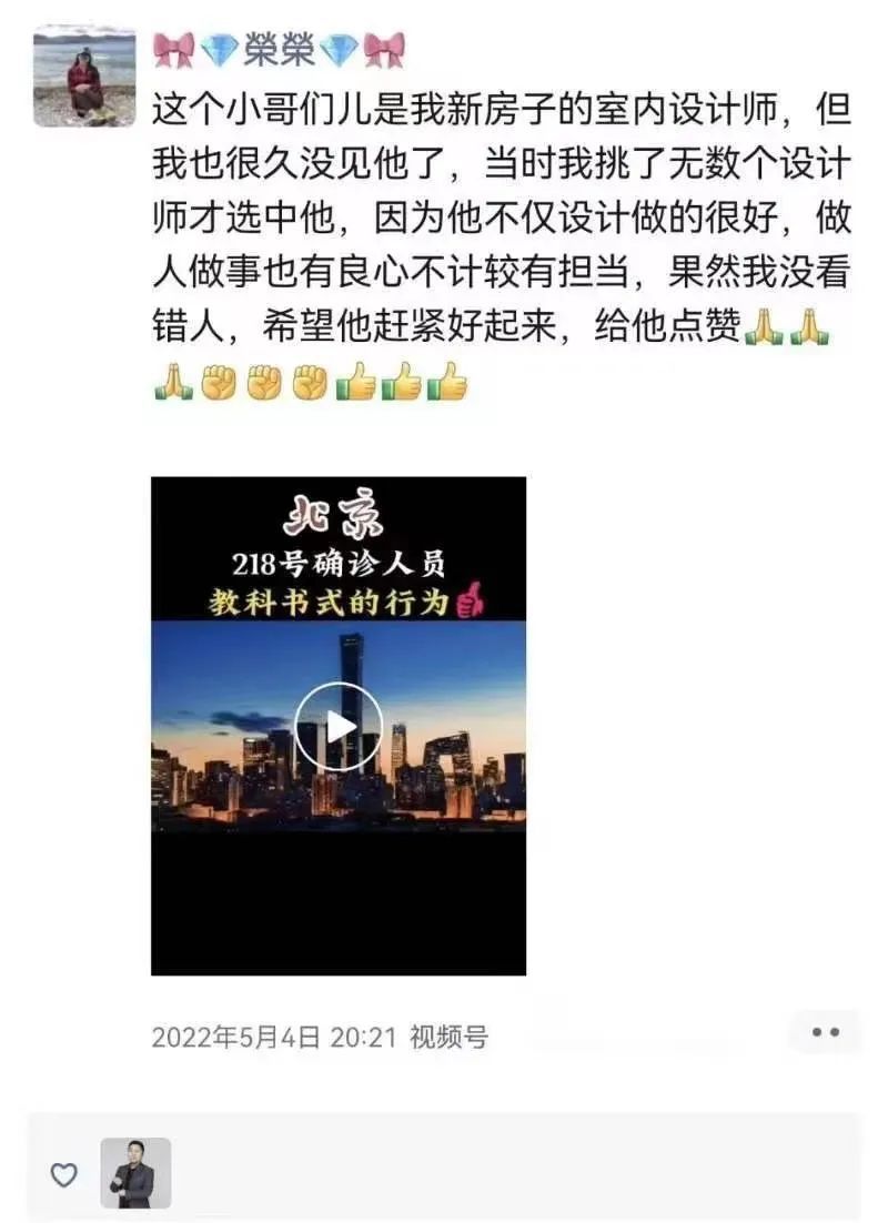 在张先生的手机里,还有大量客户发来的信息,当得知他是网上报道的“中国好邻居”,大伙不约而同为他点赞。“祝你尽快康复,好人好报。”“他是我新房子的设计师,不仅设计做得好,而且做人做事不计较有担当。”张先生还向客户表示了歉意,“给您一家添麻烦了,实在是对不起。”对方则回复,“这是个偶然事件,谁也没办法控制,好好治疗,早日出院。”