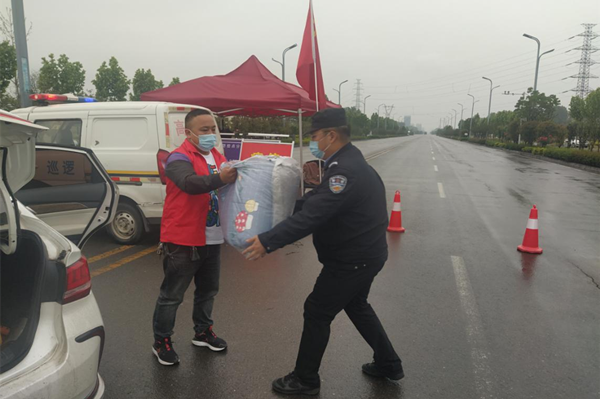 “防护服、护目镜、防护面罩、口罩、手套……每次执勤前,卡点服务组都把个人防护装备提前发放到我们手中,执勤的紧张感一下子被暖暖的保护冲淡了,我们感觉很安心。”当卡点执勤人员在“前方”执勤时,“后方”有一群人在他们背后默默支持。同样冲在“抗疫”一线,他们为确保执勤卡点环境设施方便安全、防疫物品供应充足提供强有力的保护屏障,这就是由区城乡建设和生态环境局的志愿者组成的卡点服务组,他们为保障和提升战“疫”一线执勤人员的战斗力,早出晚归、起早摸黑,每时每刻穿梭在三个卡点中,哪里需要就去哪里,他们是配送物资的“快递员”,更是卡点的“后勤保障员”,他们为一线执勤人员做了大量幕后工作,提供了坚强有力的后勤保障。