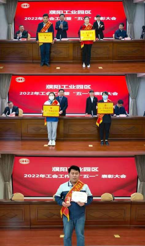 河南省濮阳工业园区工会委员会公布并表彰2022年“濮阳工业园区五一劳动奖”获奖单位和个人。濮阳东方雨虹生产研发物流基地荣获2022年“濮阳工业园区五一劳动奖状”;综合服务部荣获“五一巾帼标兵岗”;沥青卷材车间副经理兼工会主席刘金国荣获“五一劳动奖章”。