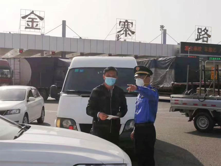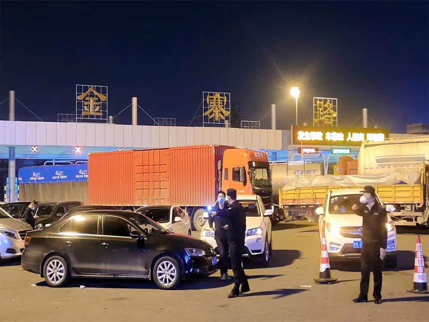 5月10日凌晨,在金寨路收费站,合肥经开区城管执法大队莲花中队执法人员和其他部门防控工作人员一道引导来(返)肥驾乘人员进行登记,查验其健康码、行程码,然后逐一为他们安排核酸检测。对发现有疫情中高风险地区和敏感地区旅居史的人员,根据规定进行集中隔离健康。该区城管局负责人介绍说,在此处卡点,城管部门先后抽调30名执法队员分成两班倒,昼夜执勤。
