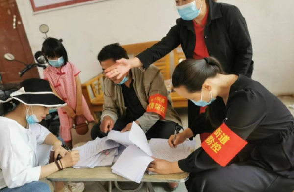 居家的办公人员则主动到居住地社区报到,下沉到各自居住地社区开展协同疫情防控工作,结合社区网格化管理,开展疫情防控宣传、组织开展社区核酸检测、做好自己和家人的健康监测、保持良好卫生习惯等,充分增强居民的自我防护意识。同时,配合社区全面深入开展中高风险区来(返)人员排查、登记,协助社区做好人员测温、查码、控流、消毒、戴口罩等防控措施,筑牢疫情防控防线,让党旗在疫情防控一线高高飘扬。