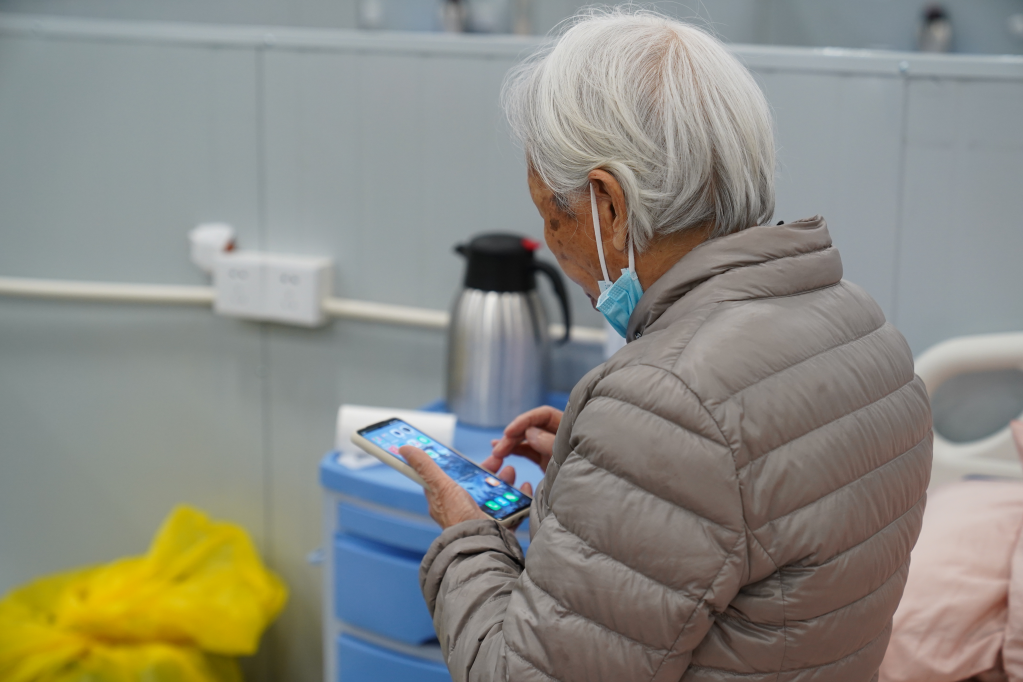 王漫如老人在临港方舱医院休息(新华社记者杨有宗 摄)