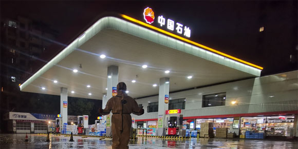 3月28日,站里只剩下苏国明和另外3名驻站员工,加油的车辆只剩下防疫保障用车。为了保证安全,苏国明将4个人划定在不同的区域,避免同处一个室内空间。看到防疫车辆,苏国明总是第一个冲上前去,为车辆消杀、加油,核对车主绿码、核酸情况和通行证,在户外采用移动POS机进行无接触支付。他每天都认真叮嘱员工穿戴好防护服、面罩等,一天3次做好场地消杀。