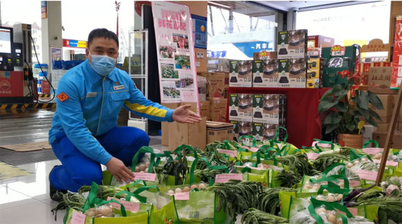 一边是站里充足的粮油、蔬菜,一边是小区里片叶难求的居民,苏国明想到了平常加油站用来服务客户的“线上朋友圈”。苏国明从第一个提到买菜难的员工所在小区开始尝试,建立“绿川蔬菜配送群”,当天就接到19单。他按客户订单将蔬菜、粮油、奶蛋送到小区门口,尝试面向社区无接触配送。由于加油站的物资质量有保证、不涨价,一传十,十传百,配送群一下子扩张到54个小区2000多人。