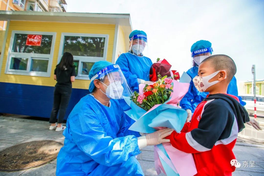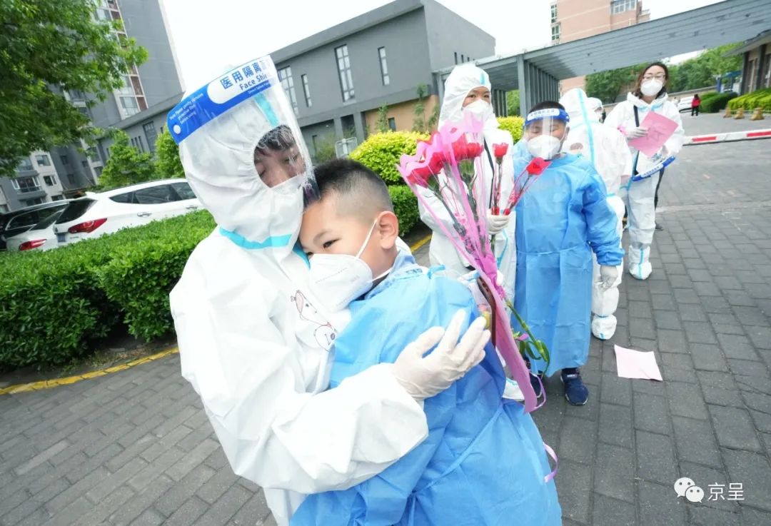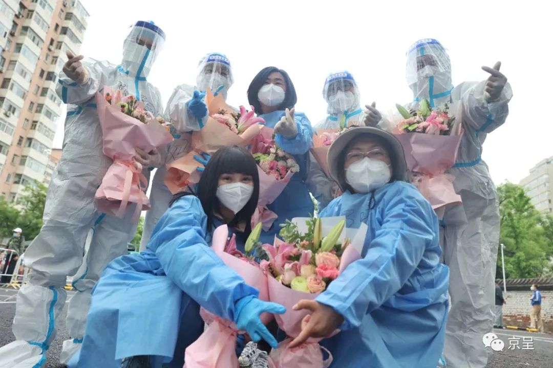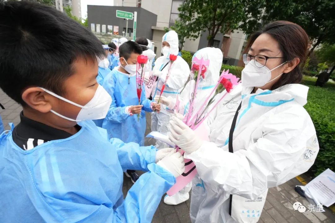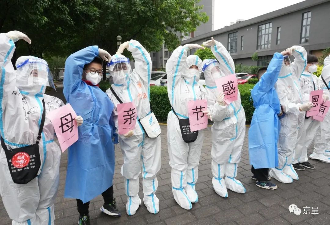 通州区永顺镇馨通家园刚解除管控措施,忙碌十天的社区工作者妈妈们收到母亲节的礼物。之后,她们立刻转入永顺西里继续进行防疫工作。