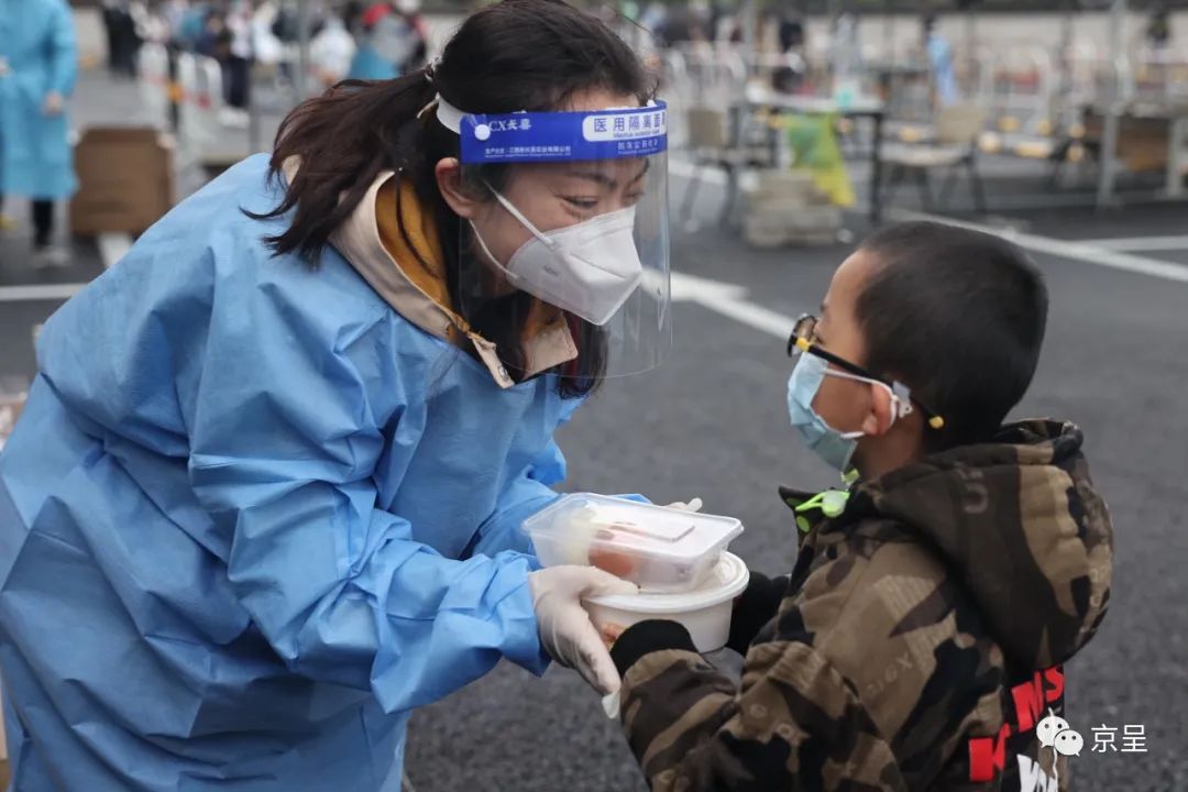 朝阳区左家庄街道新源西里社区副主任姚磊,在大规模筛查中一直在点位盯守,她也收到一份特别的母亲节礼物,儿子送到点位的早饭。