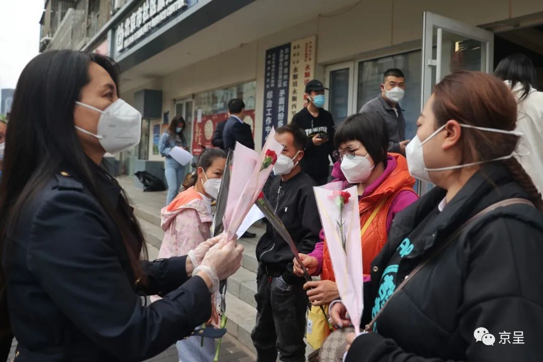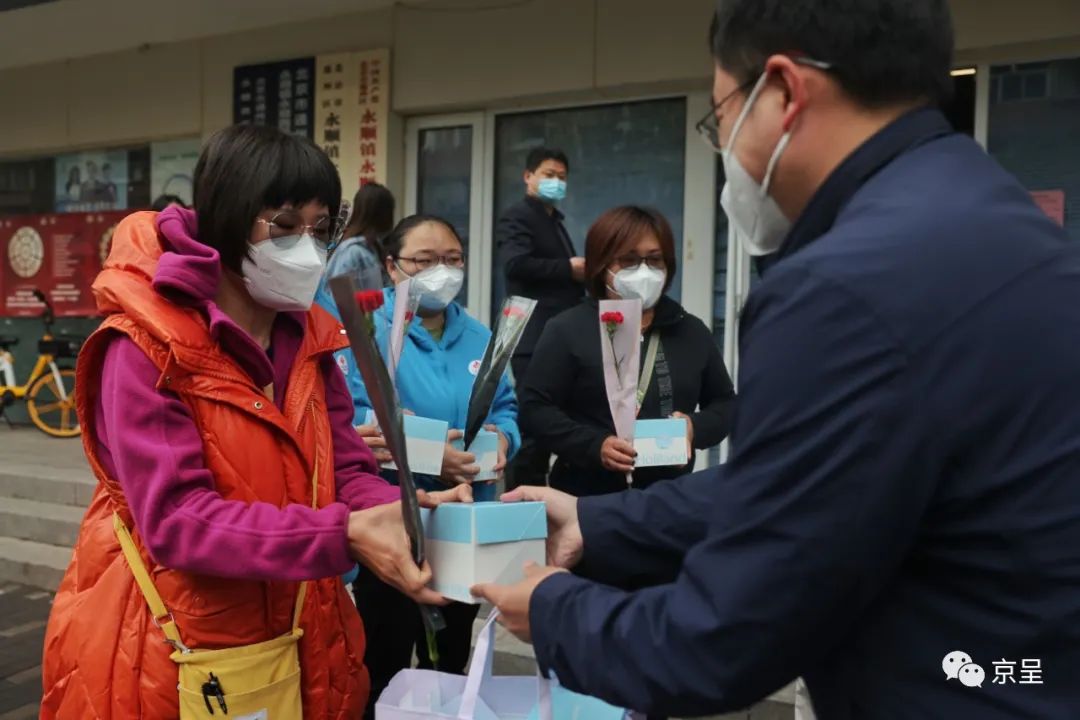 石景山区八宝山街道,抗疫一线的妈妈们也收到了鲜花和祝福。