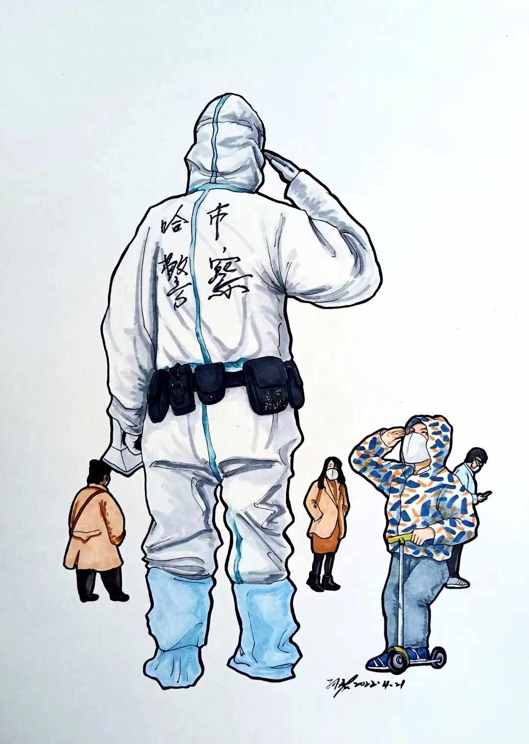 疫情当前,哈尔滨市双城区一高中教师孙万岩自告奋勇成为一名核酸采样工作志愿者,在抗疫一线,他亲眼见证了一幕幕感人的画面。孙万岩和其他核酸采样人员共同创作了一组漫画,定格住这些美好的瞬间。