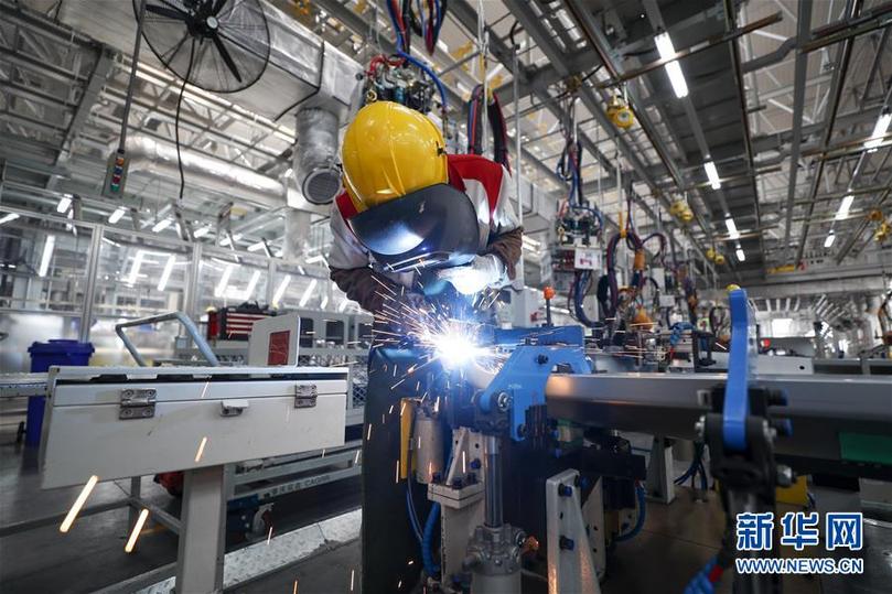 在长城汽车股份有限公司重庆分公司,焊装车间的员工正在进行焊接作业。新华社(黄伟摄)新华网发