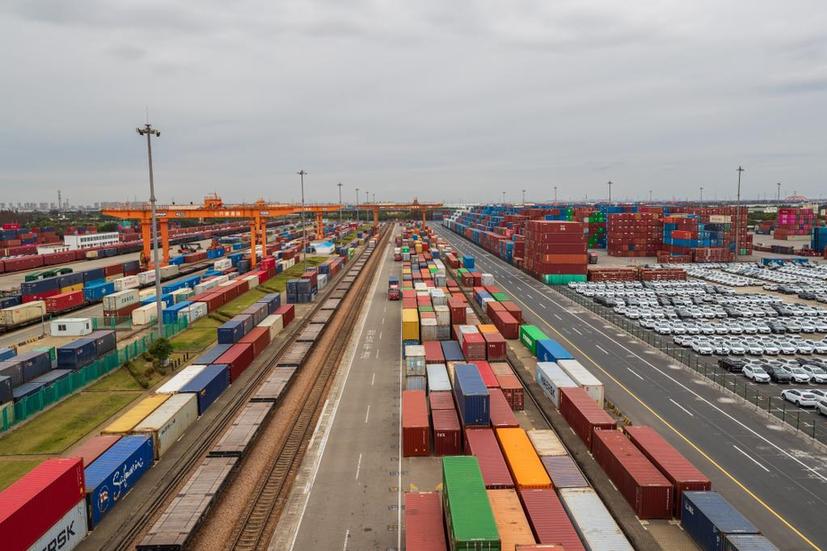 图为芦潮港站集装箱堆场。中国铁路上海局集团供图。新华网发