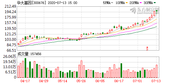 值得一提的是,在今年上半年业绩大增的同时,华大基因股价也迎来持续上涨。今年上半年,华大基因股价累计涨幅近190%。