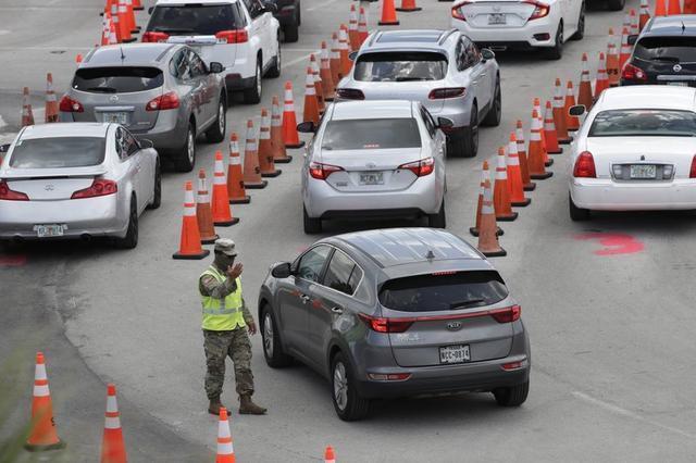 在亚利桑那州菲尼克斯,有当地市民开着私家车排队等待检测,时间长达13个小时 图据美联社
