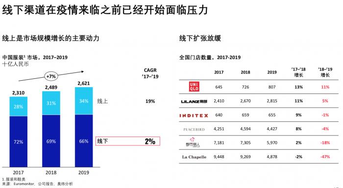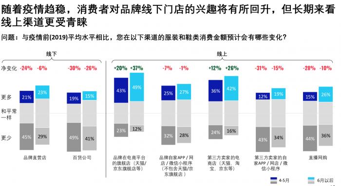 疫情冲击着各行业市场格局的改变。“我们认为疫情使中国的服装和鞋类市场出现了长期结构性转变:电商取得进一步增长并向高收入群体加速渗透,不同线级城市间的市场分化加剧,线下门店面临更为严峻的挑战,亟需转变思路以适应疫情后的新常态。”