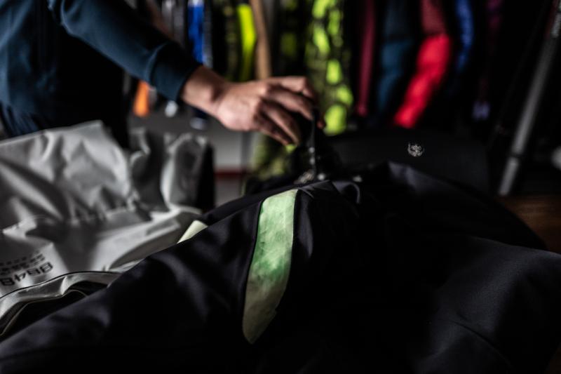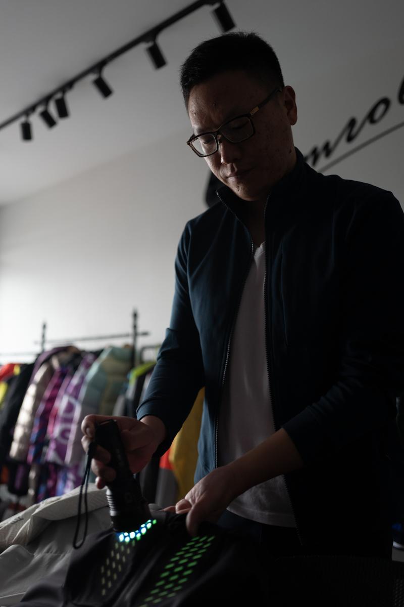 据介绍,公司主要负责生产高端户外运动面料以及成衣。在罗曼罗兰的样品间,企业负责人江南向展示了公司推出的各种具有特种性能的面料产品,包括不同光线下可变颜色时尚功能性面料,还有能够持续8小时发光的荧光面料。