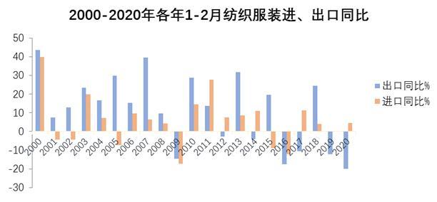 2020年1~2月纺织品服装进出口呈现如下特点: