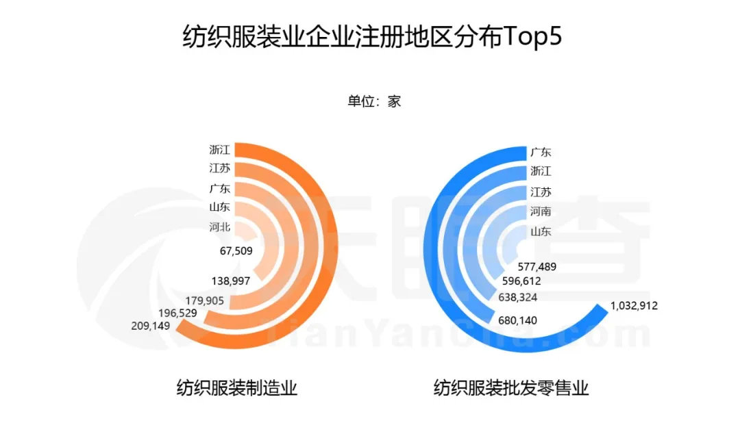 天眼查数据显示,尽管我国纺织服装制造市场开市复工已经半个多月,但受疫情影响,2-3月企业新增量同比下滑50.9%,不少服装线下店导购为缓解客流量减少的问题而转向线上直播。从事纺织、纺织服装、服饰的制造业企业超126万家,其中,纺织业发达的浙江省、江苏省企业最多,其次为广东、山东、河北。经营范围含“纺织、服饰、服装”的批发、零售类企业,高达844万家,其中广东省最多,随后为浙江、江苏、河南、山东。
