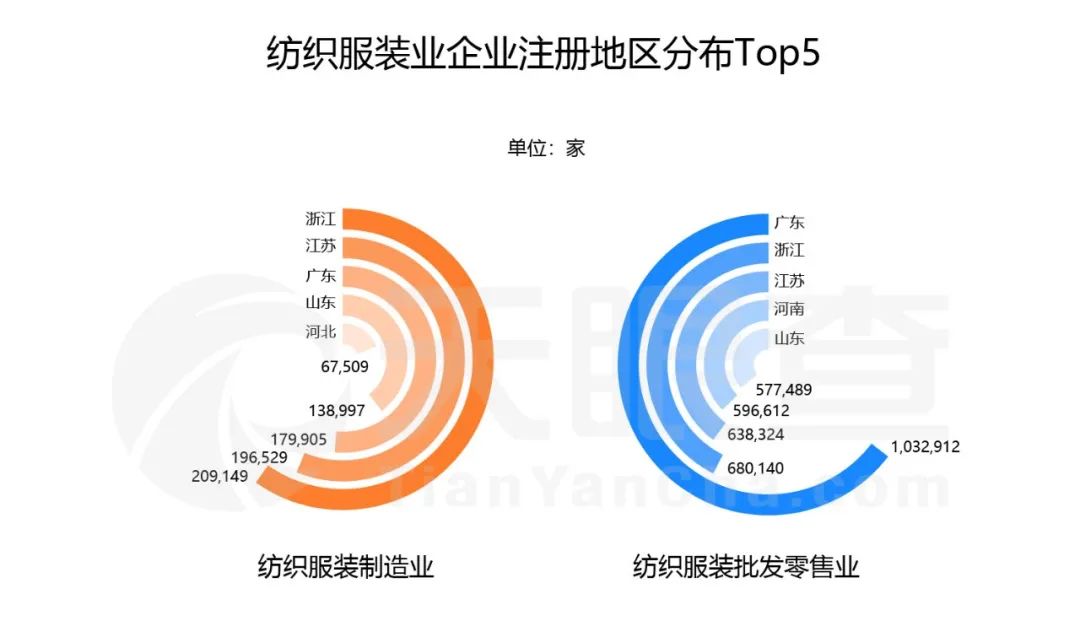 天眼查数据显示,尽管我国纺织服装制造市场开市复工已经半个多月,但受疫情影响,2-3月企业新增量同比下滑50.9%,不少服装线下店导购为缓解客流量减少的问题而转向线上直播。从事纺织、纺织服装、服饰的制造业企业超126万家,其中,纺织业发达的浙江省、江苏省企业最多,其次为广东、山东、河北。经营范围含“纺织、服饰、服装”的批发、零售类企业,高达844万家,其中广东省最多,随后为浙江、江苏、河南、山东。