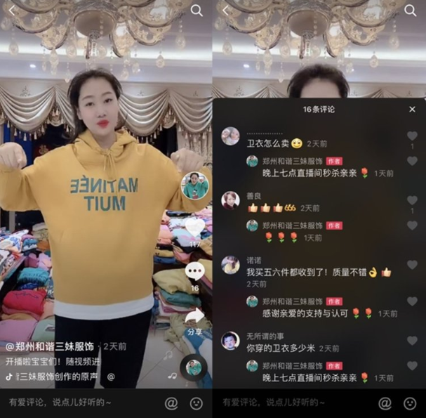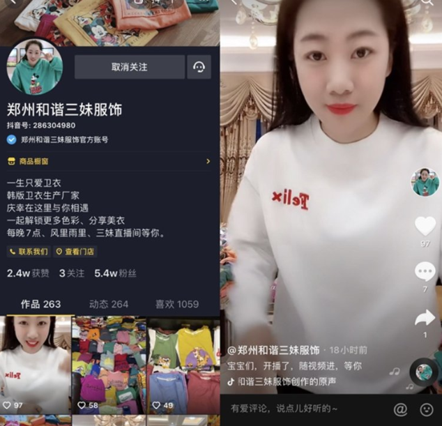 疫情之下,一边是门可罗雀的线下商场,一边是宅在家里消费需求得不到满足的用户,为减轻疫情带来的影响,不少商家把目光转到了互联网直播。如果说2019年李佳琦、薇娅等网红的大红大紫让电商直播成功“出圈”,那么此次疫情则有望开启一个全民直播卖货的时代。最近这段期间,@郑州和谐三妹服饰 的老板娘三妹在抖音上直播卖货,解决了因为疫情积压下的库存,还用实际的销售数据,向老公证实了自己的商业眼光。