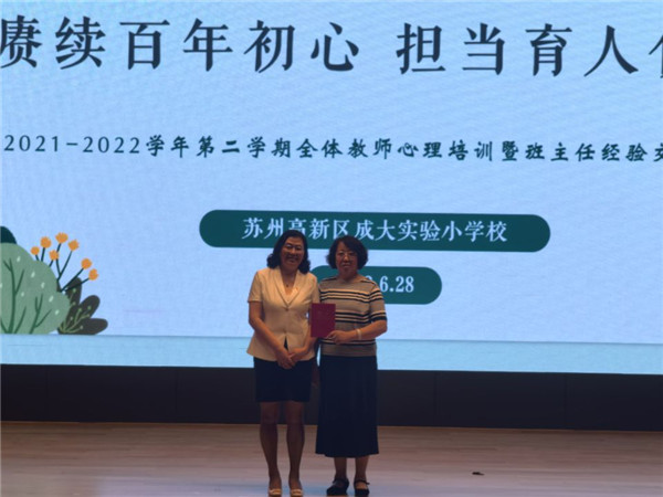 2022年是我校建校110周年。百年的历程,百年的拼搏,百年的辉煌,迎来了百年的华诞。为了丰富校园文化生活,提高教师心理健康教育水平,发挥班主任团队的重要作用,从而达到班主任专业化成长。6月28日下午,苏州高新区成大实验小学校举行了以“赓续百年初心 担当育人使命”为主题的全体教师心理培训暨班主任经验交流活动。