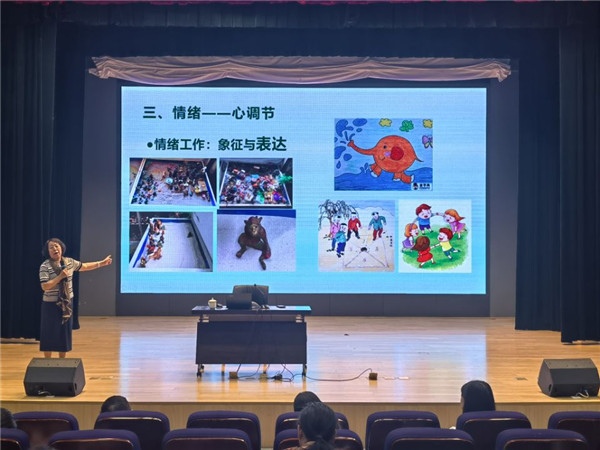 本次活动分为四个环节,首先,苏州科技大学心理系鲍谧清教授作主题为《疫情后心理成长》专题心理讲座。鲍教授从“情绪——心朋友;情绪——心力量;情绪——心调节”三个方面告诉老师们情绪,是生命的感受和记忆,有着自主的生命力,老师应该多学习相关的心理学知识,这样才能采用适切的方法教育我们的孩子。