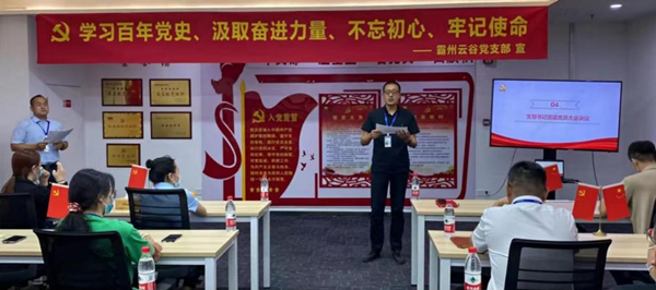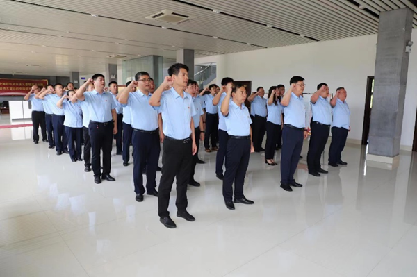 7月1日上午,河北霸州经济开发区党工委副书记韩楷同志与开发区全体党员干部高举右手,重温入党誓词,内心重现当年在《入党志愿书》中写下的入党志愿,再次燃起“为共产主义奋斗终身”的激情和信念。全体党员干部通过重读誓词,进一步坚定入党初心,党的忠诚之心,法纪的敬畏之心。