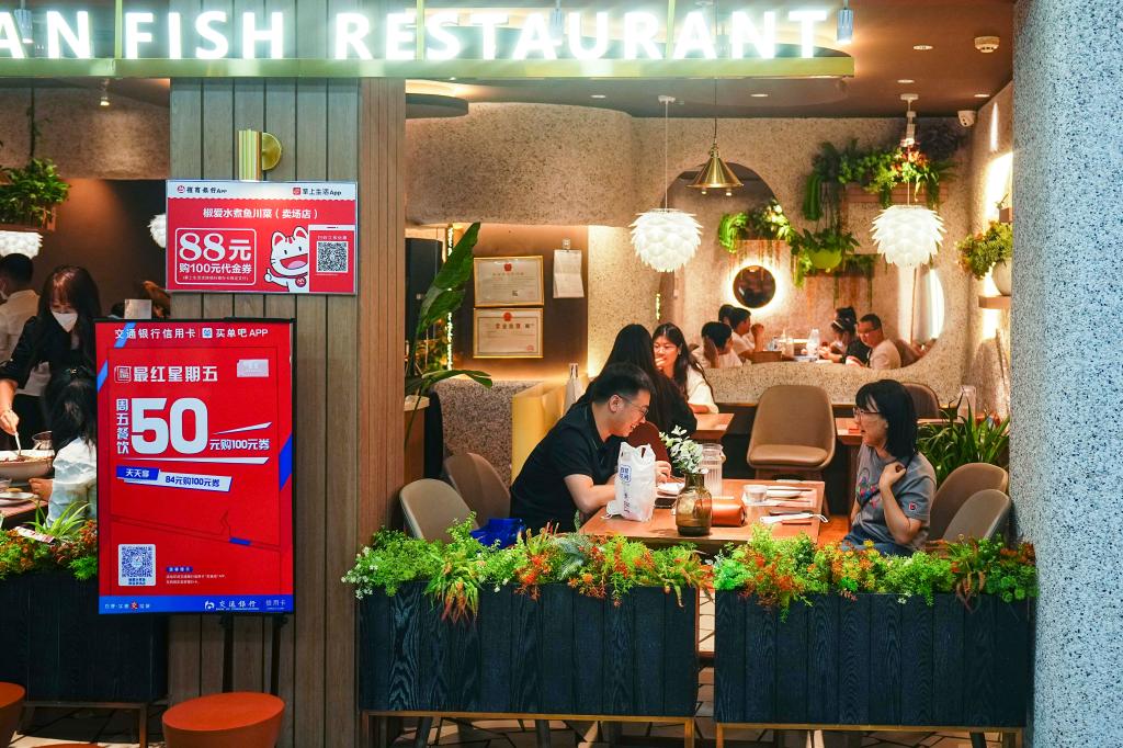 2022年5月28日,市民在长春市一家餐厅内用餐。自这一天零时起,长春市各类生产经营主体全面恢复营业。新华社记者许畅摄