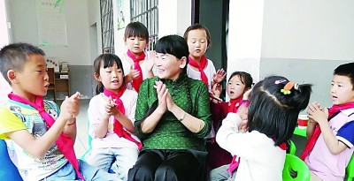 和学生们在一起的山村教师支月英。资料图片