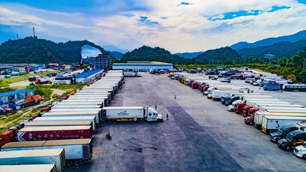 (排满越南货车的河口北山国际货场 饶勇供图)