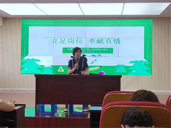 为进一步提高班主任班级管理水平,落实合肥市杏林小学劳动、礼仪习惯养成教育,营造和谐、文明、奋进的校园氛围,6月25日下午,合肥市杏林小学在五楼多媒体召开了“立足岗位 奉献真情”优秀班主任经验交流会,唐玥校长、李晓玲副校长、大队辅导员蔡苗老师和全体班主任参加会议。