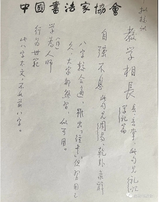 李先生更是拿出了考证依据,“最初启功先生撰写的校训是写在大约16开裁切好的宣纸上,题头还有‘校训’二字,这版校训曾经排版成横式用于学校的宣传明信片上。”