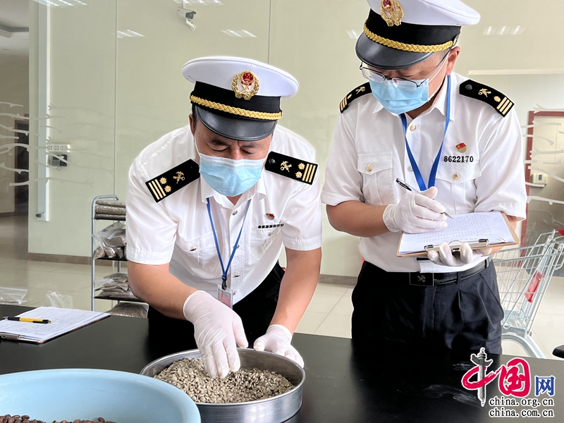 (海关关员到企业对出口咖啡豆进行现场检验检疫 吴深醒摄)