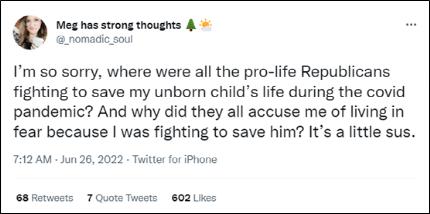 在拿疫情防控不力“打脸”保守派的人里,最有力的当数下面这位女网民。从描述看,她是在疫情中怀上了孩子,她批评道:“那些拿保护生命说事的共和党支持者们,当初我担心自己和未出生孩子感染新冠时,你们这些人都在哪里?为什么我在(采取防疫措施)保护孩子生命时,你们会指责我?”