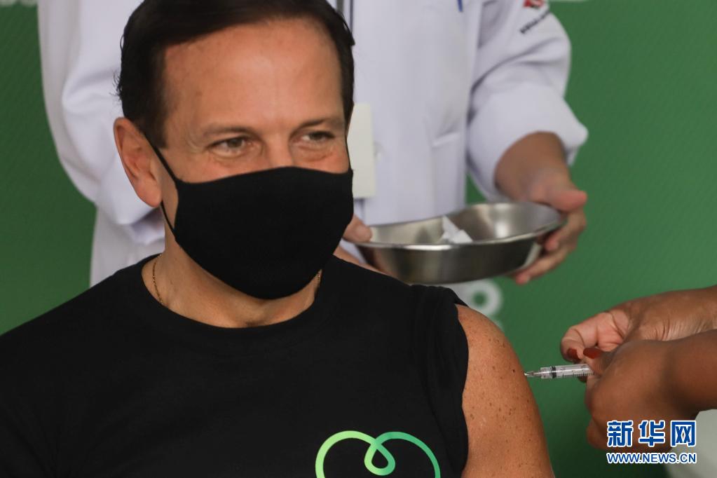 2021年5月7日,巴西圣保罗州州长若昂·多利亚在圣保罗市一个疫苗接种点接种克尔来福新冠疫苗。