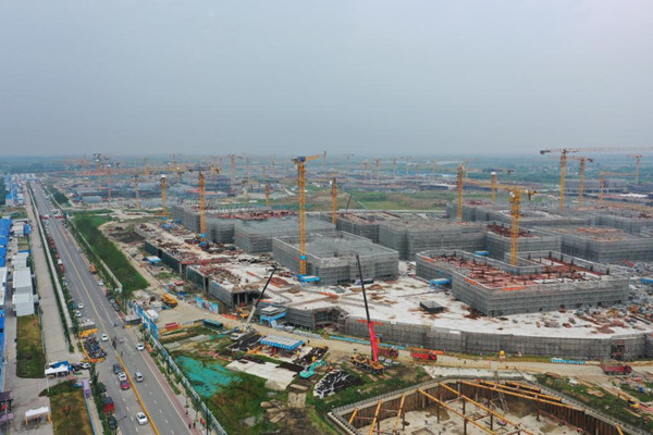 运输车辆来回穿梭,电钻飞溅出四射的火花。6月下旬,上海市青浦区金泽镇艳阳高照,华为青浦研发中心建设工地上,千余名工人正在紧张地施工建设。
