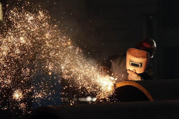 2020年2月10日,工人在北方重工结构件分厂车间工作。新华社记者杨青摄
