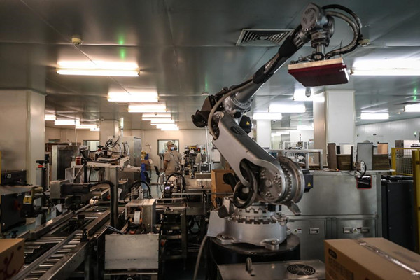 2020年2月8日,东北制药工作人员在生产车间工作。新华社记者潘昱龙摄