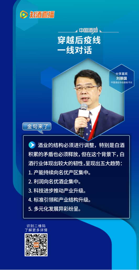 后疫情时代,不仅要看白酒产业,更要看大趋势,与一线名酒并肩竞争。和刘振国一样,田卓鹏也看到了集中化趋势的凸显。除此之外,田卓鹏还在XN知酒直播间对中国酒业发展十大趋势做出了研判。