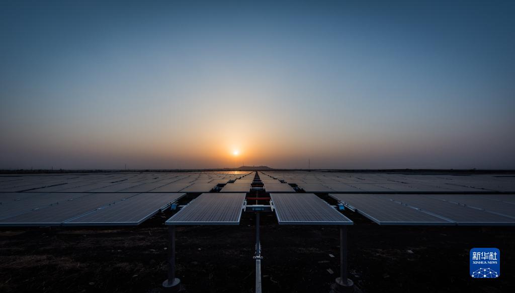 这是2017年4月10日在印度南部城市海德拉巴附近拍摄的一处光伏电站。中国企业为该电站提供了部分太阳能面板组件和全套的自动日照追踪支架系统。新华社记者 毕晓洋 摄